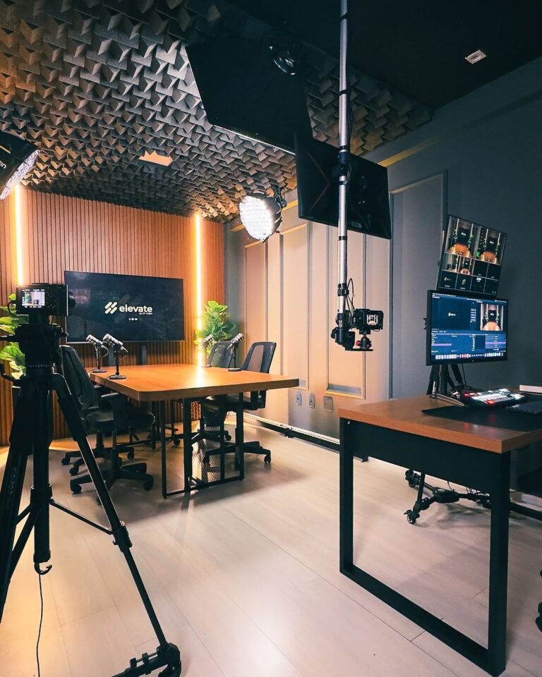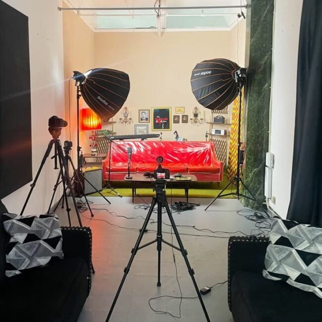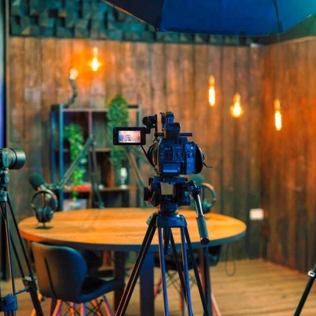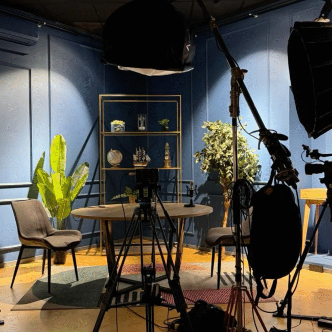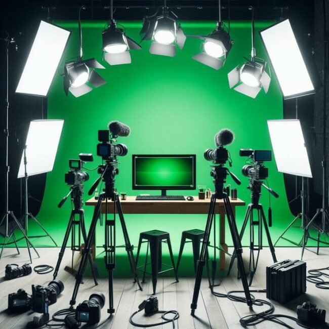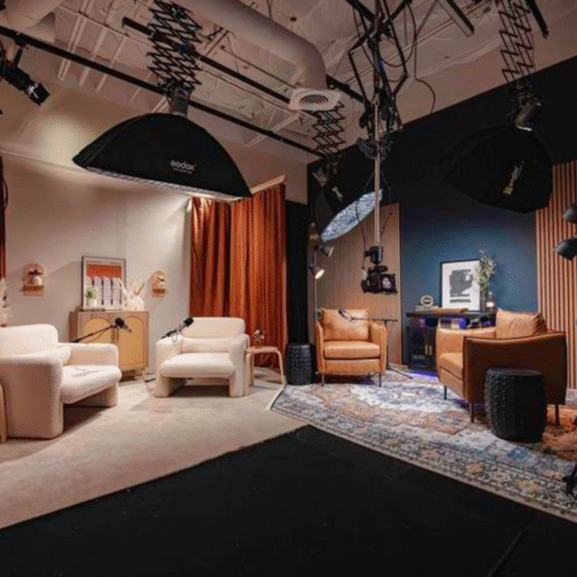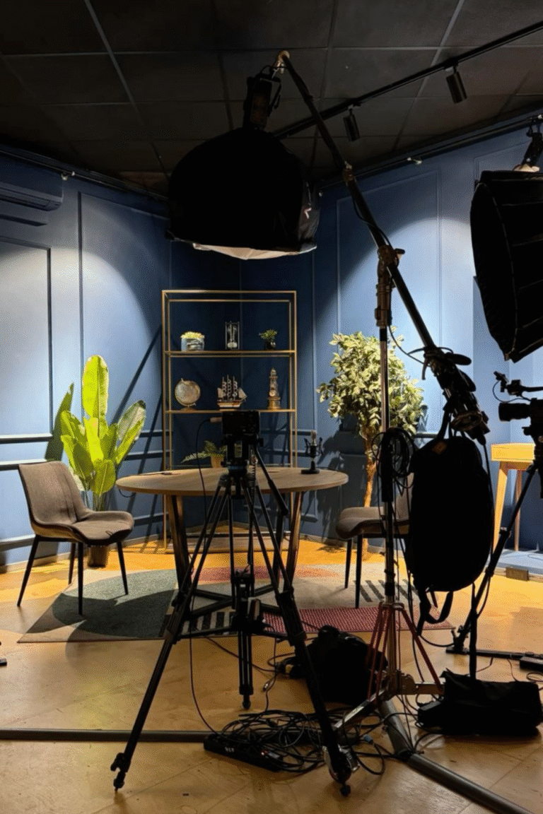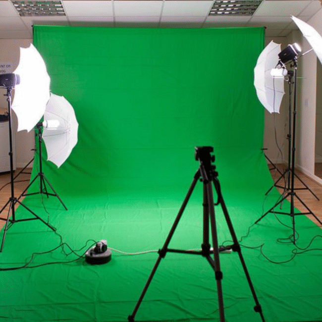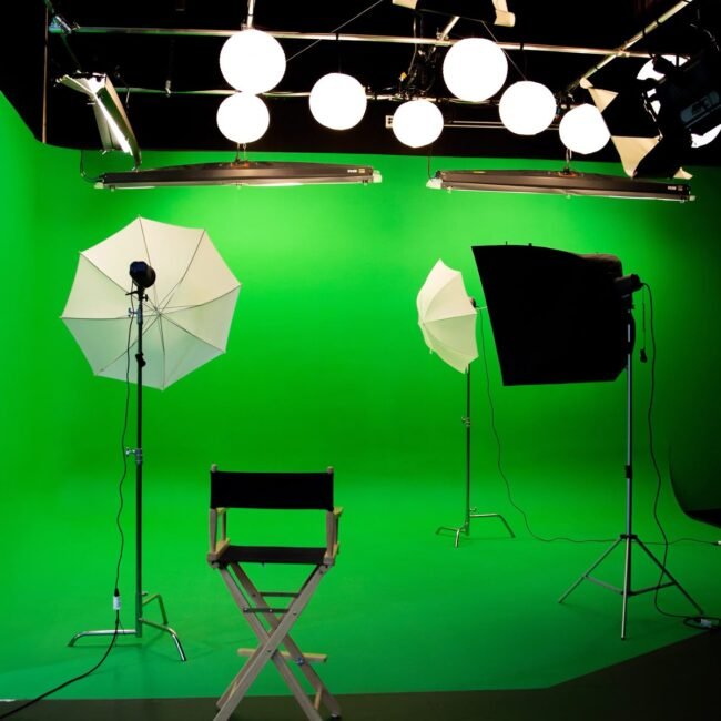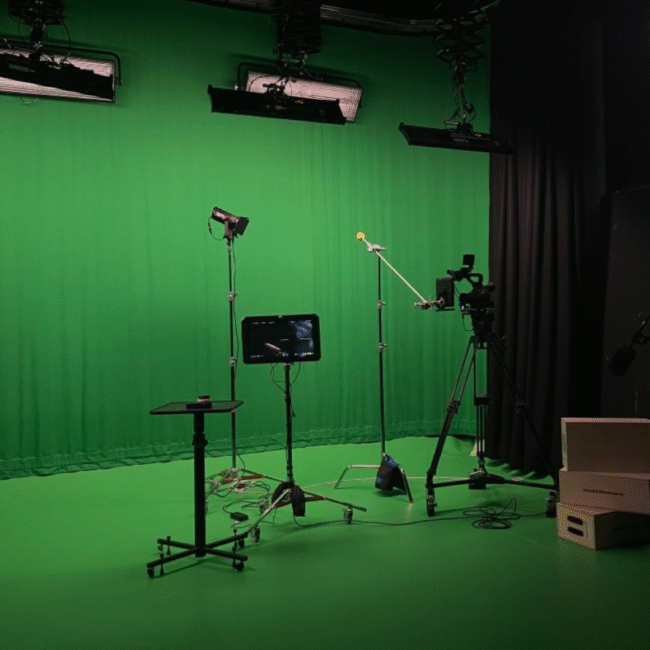 Our studio is equipped with professional-grade cameras, lighting setups, green screens, soundproof rooms, makeup and dressing areas, and high-end editing suites.