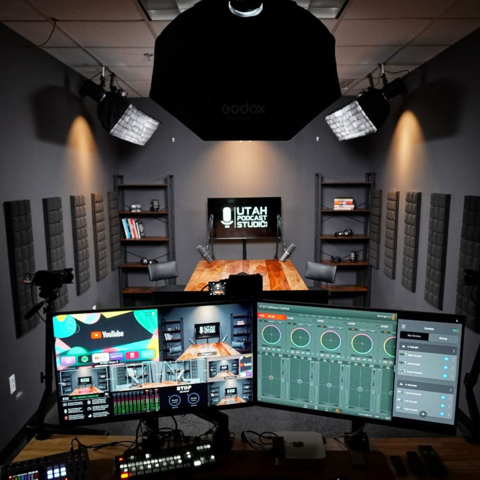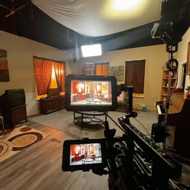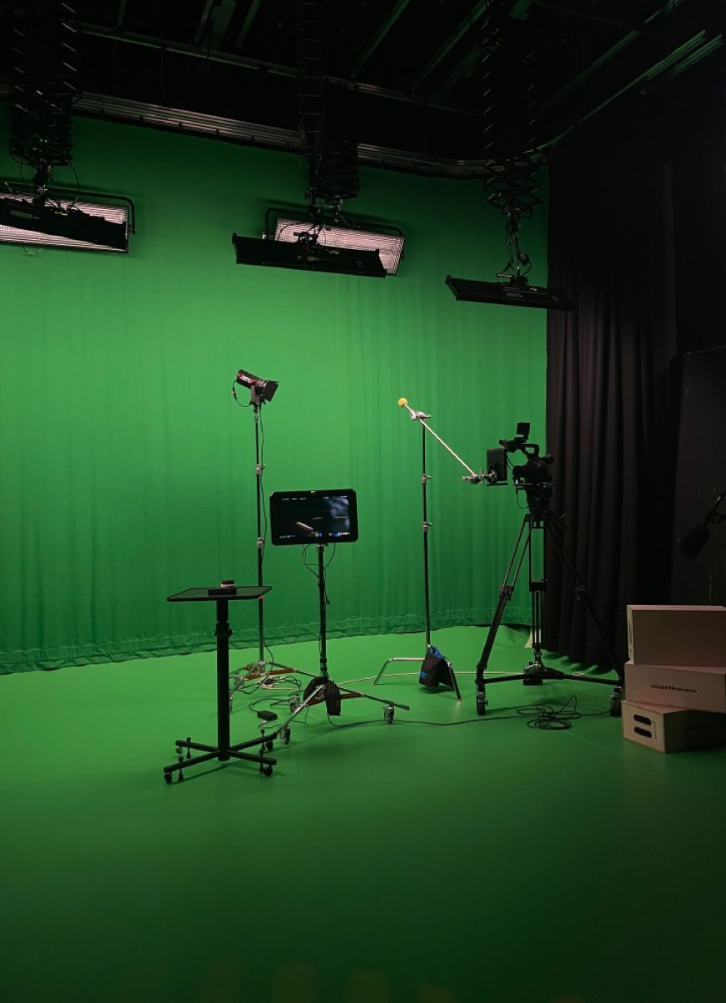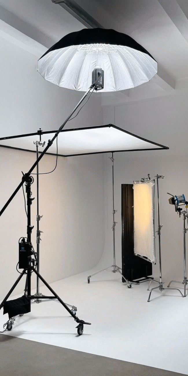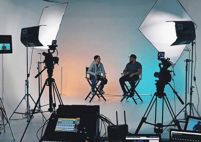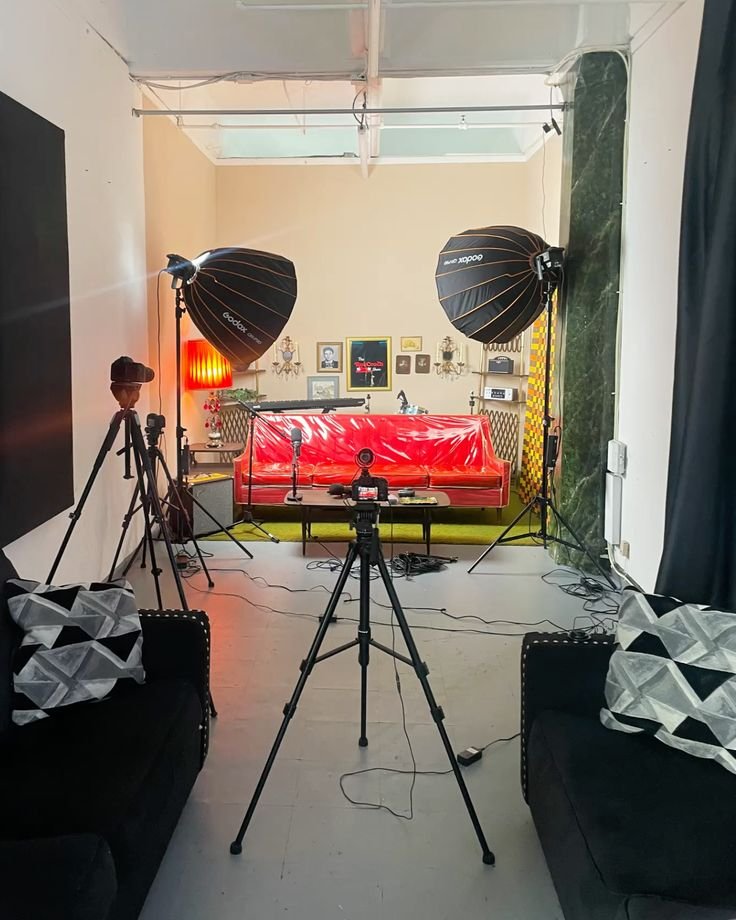 Our studio is equipped with professional-grade cameras, lighting setups, green screens, soundproof rooms, makeup and dressing areas, and high-end editing suites.